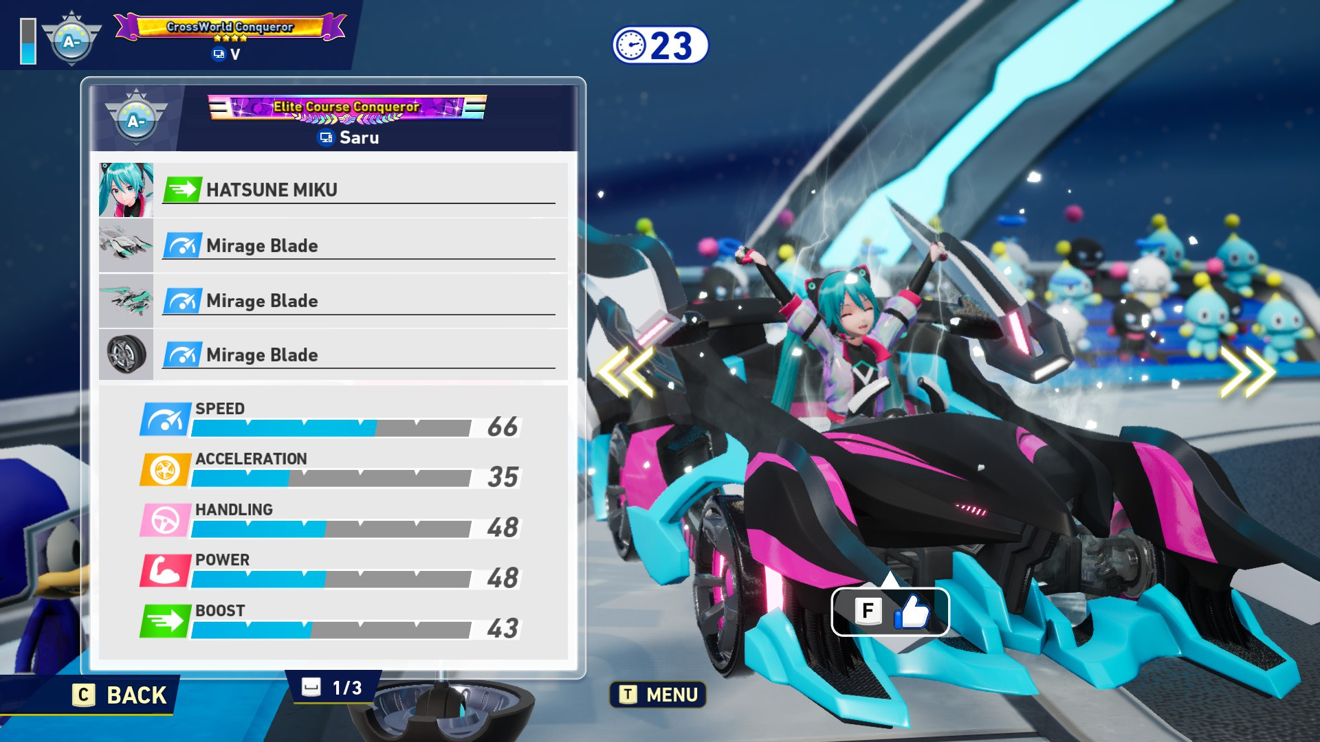 ...but I also played alot of Hatsune Miku, and also Joker, from Persona 5. While this isn't a Sega All-Stars game proper, It Is still called Crossworlds, so there are naturally gonna be some Sega crossover stuff, which I think people sorely missed from the older Sonic Racing Entries. That said, I'll refrain from talking about these 2 further, because It foreshadows one of biggest gripes I have with this game...