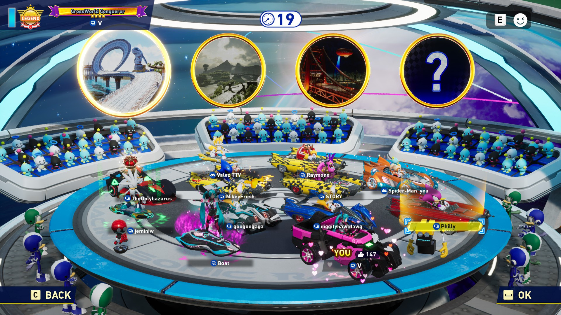 I'm very impressed at how they handled the Crossworld mechanic, It compliments the flow of the race super well, and adds an extra layer of excitement to each race. No two races will ever truly be the same, It keeps everyone on their toes when the Crossworld gets selected, and so much chaos ensues because jesus, people online really wanna be the one to pick the Crossworld.