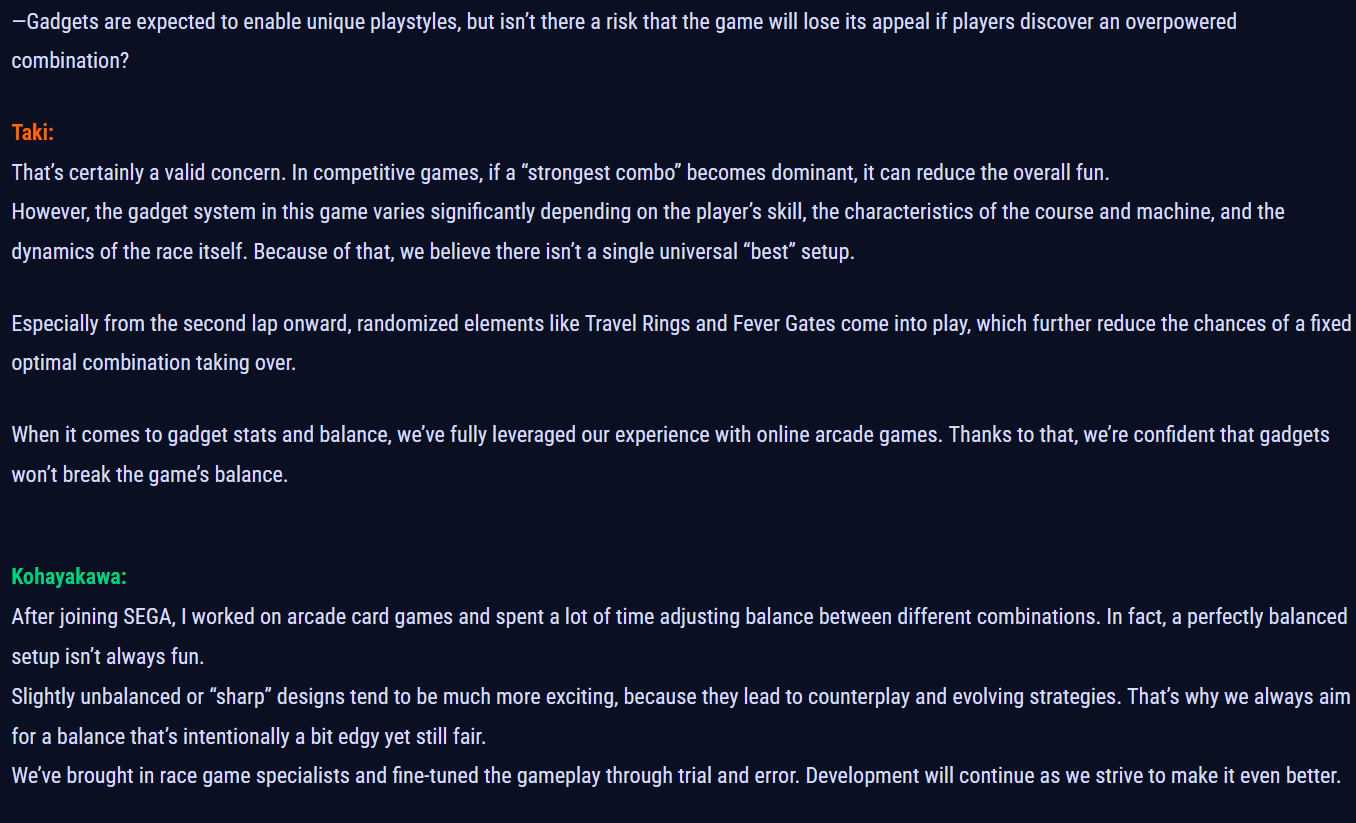 Somehow, there is player expression in a Kart racer, there are naturally gonna be "Meta" Gadget builds, but you don't need to use them to succeed in a race, anyone can just run anything that suits their playstyle, I personally like to use more "balanced" builds and succeed pretty well, but I'm always experimenting and just seeing what works and whats fun, the Gadget system really appeals to the Fighting game Lab Monster in me, lol.