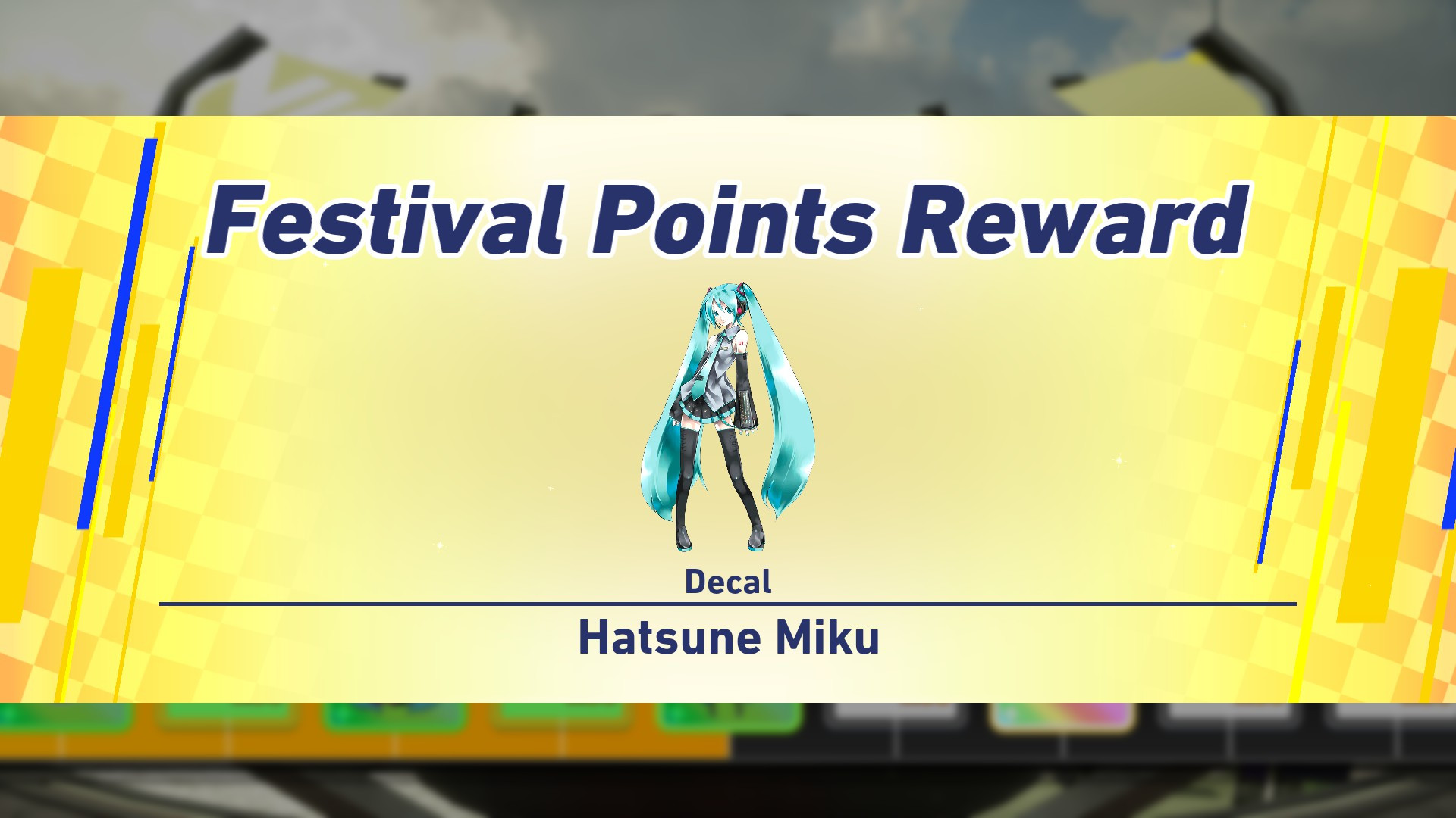Aside from the character and vehicle, they also come with a Festival event, that mode I mentioned earlier but didn't explain. Over the course of a weekend World Match will be disabled and in It's place is a mode that is exclusively playing the team modes from Race Park, among others unique to Festivals; If your familiar at all with Splatoon, It's kind of like Splatfests. You get randomly picked a team based on one of the character from that Series and try the best you can to cooperate with others and Win and get points for items in whats essentially a battle pass.