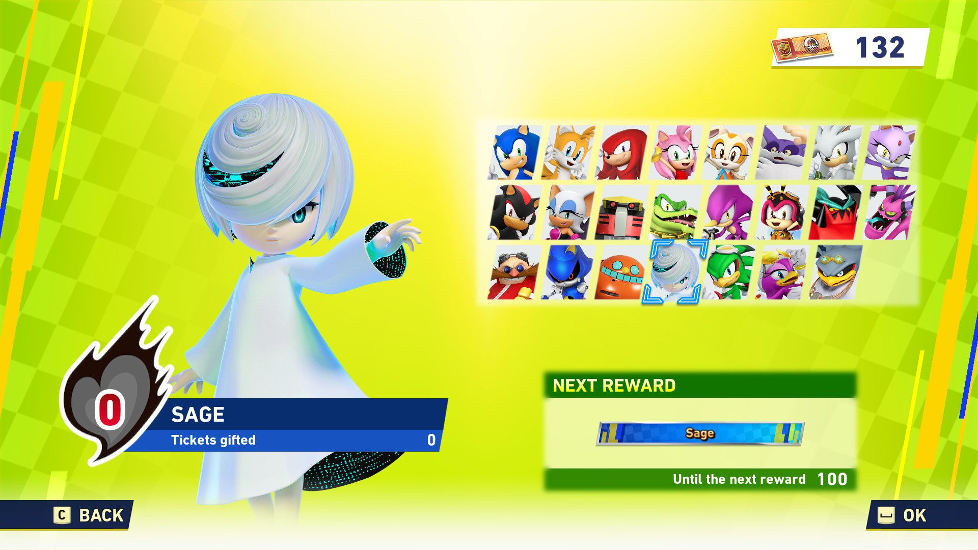 I mainly play as Vector the Crocodile and Sage. Vector has been my favorite Sonic character for aslong as I can remember, and I think Sage is cute, It's funny seeing characters react to the fact that Eggman has a daughter now. Besides than those 2, I also like playing as characters I like I'd never be able to play otherwise, like Espio the Chameleon, Metal Sonic, and Zazz.